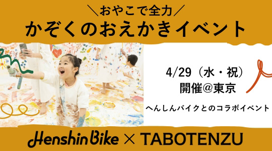 2026.4.15NEWINFO4月29日(水・祝)へんしんバイク×TABOTENZU「おやこで全力!かぞくのおえかきイベント」参加者募集中! -